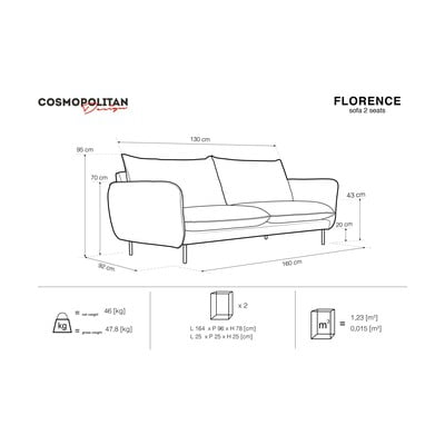 Cosmopolitan Designi diivan Florence on mööbliese, mis kutseb istuma. Sa naudid mugavust, mida pakub selle täpselt kokku pandud konstruktsioon ja mugav polsterdus. Polsterdus on valmistatud mõnusast savoltist ja on pehme puudutusega. Samas on diivanil kõrge Martindale väärtus.