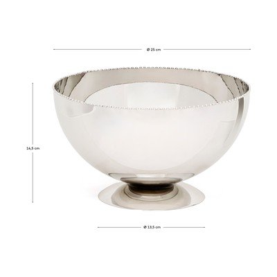 Kave Home Nirela kauss on valmistatud roostevabast terasest, mis säilitab oma laitmatu välimuse ja on pärast iga kasutuskorda kergesti puhastatav. Tänu korrosioonikindlusele garanteerib see kõrge vastupidavuse. Funktsionaalne ja mitmekülgne disain teeb sellest ideaalse valiku nii igapäevaseks kasutamiseks kui ka erilisteks sündmusteks, tuues kööki praktilisust ja elegantsi. Kauss seisab stabiilsel alusel ja selle ülemist serva kaunistab õrn pärlmuster.