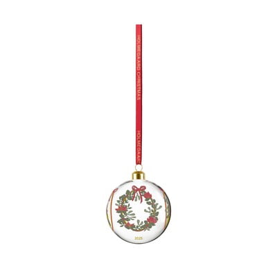 Holmegaardi Annual Christmas Bauble 2025 on kaunis täiendus pühadehooajale. Sel aastal vaatab Holmegaard tagasi oma kahesaja-aastasele ajaloole, seega on see ehe romantilise jõuluhõnguga, mis viitab brändi asutamisperioodile. Ehet kaunistavad kunstnik Jette Frölichi motiivid, mis kujutavad pidulikku pärga lopsakast rohelusest, jõuluroose ja astelpajumarju, samuti noorpaari, kes hoiab käest kinni puuvõõriku all. Aasta 2025 on ehtele nähtavalt märgitud. Seda käsitsi puhutud klaasist kaunistust läbimõõduga 8 cm täiendab elegantne kuldse reljeefiga siidlint, mis sobib ideaalselt ehte kuldse ülaosaga. Holmegaardi jõuluehe loob sooja ja nostalgilise atmosfääri, mis soodustab meeldivaid vestlusi ja meenutab möödunud jõule. Saate selle riputada jõulupuule või rohelisele oksale ja kombineerida seda teiste Holmegaardi jõulusarja esemetega, mis on loodud nii, et neid saab hõlpsasti kombineerida eelmiste aastate kaunistustega. Holmegaard on olnud klaasitootmise teerajaja alates 1825. aastast, luues ikoonilisi disainesemeid.