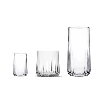 Iga klaas on kaunistatud peente vertikaalsete mustritega, andes sellele elegantse ja ajatu välimuse. Komplekti kuuluvad klaasid mahutavusega 360 ml, 315 ml ja 135 ml.