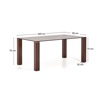 Kave Home Adularia söögilaud uhkeldab minimalistliku disainiga, sirgete joonte ja teravate nurkadega. See on valmistatud ülitugevast karastatud klaasist, mis aitab ruumi ergastada ja annab õhulisuse tunde.