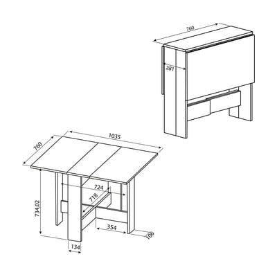 Kokkupandav söögilaud valge lauaplaadiga 76x28 cm Papillon - TemaHome