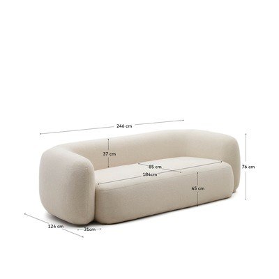 Kreem bukleekangast diivan 246 cm Martina - Kave Home
