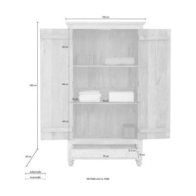 Mangopuu täispuitLakkKreemLaius 100 cmKõrgus 180 cmSügavus 40 cm