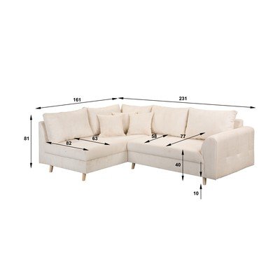 Kreem velvetist nurgadiivan (parem nurk) Ariella - Ropez
