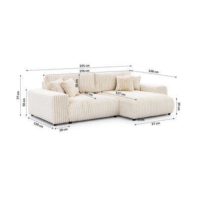 Kreem velvetist nurgadiivan (parem nurk/U-kujuline) Justin - Ropez