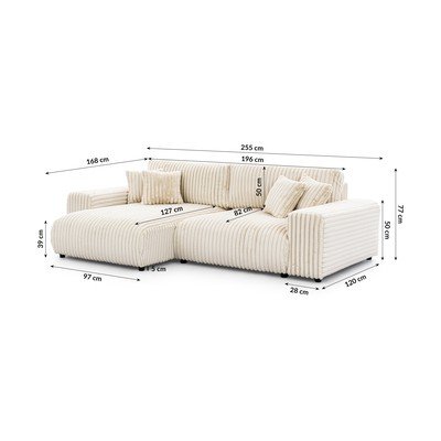 Kreem velvetist nurgadiivan (parem nurk/U-kujuline) Justin - Ropez