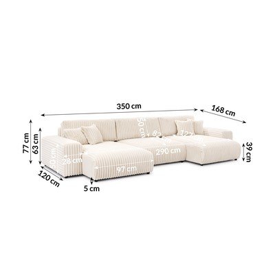 Kreem velvetist panipaigaga nurgadiivanvoodi (U-kujuline) Sarina - Ropez