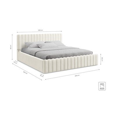 Kreemikas polsterdatud kaheinimesevoodi panipaiga ja liistudest raamiga 180x200 cm Lemi - Makamii
