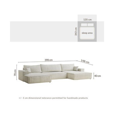 Kreemjas šenilldiivanvoodi/panipaigaga nurgadiivan (U-kujuline) Kyoto - Maison de Rêve