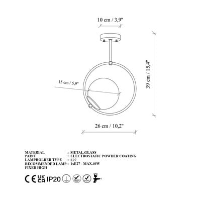 Kuldne laevalgusti klaasist varjuga 39x26 cm - Opviq lights