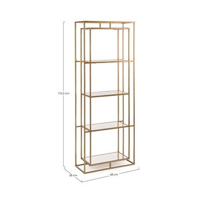 Kuldse värvi terasest raamaturiiul 68x172,5x28 cm Elenor - Bizzotto