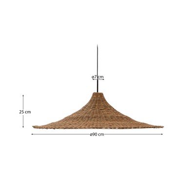 Kave Home Bladia lambivarju lisab teie interjööri meeldivat ja loomulikku hõngu. See on valmistatud rotangist ning selle ainulaadne kuju, mis meenutab laia mütsi, on hoolika käsitsi kudumise tulemus. Tähelepanu: lambipesa ja pirn ei kuulu komplekti.