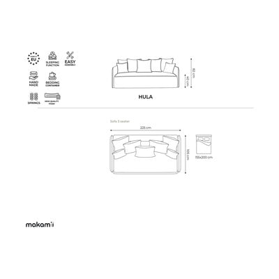 Tumehall sametist lahtikäiv/panipaigaga diivan 225 cm Hula – Makamii