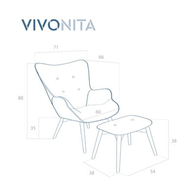 Levandulově fialové křeslo a podnožka s podnoží v přírodní barvě Vivonita Cora Velvet