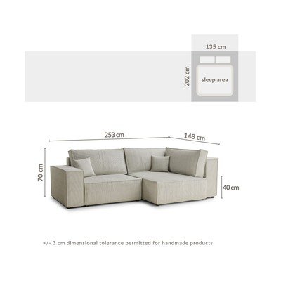 Kreemikas sametist diivanvoodi/panipaigaga nurgadiivan (parempoolne/L-kujuline) Tonga - Maison de Rêve