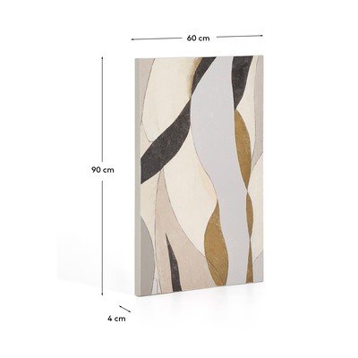 Kave Home Marvilo maal toob igasse interjööri liikumist ja elegantsi. See abstraktne lõuend, mille mõõtmed on 60 x 90 cm, on loodud peente joonte ja orgaaniliste kujundite mängu abil, mis omavahel põimuvad. See loob tasakaalustatud kompositsiooni, mis toob ruumi rahu ja elegantsi. Kasutatud toonide erinev intensiivsus annab maalile visuaalse sügavuse ja muudab selle hõlpsaks integreerimiseks moodsatesse elutubadesse, magamistubadesse või kontoritesse.