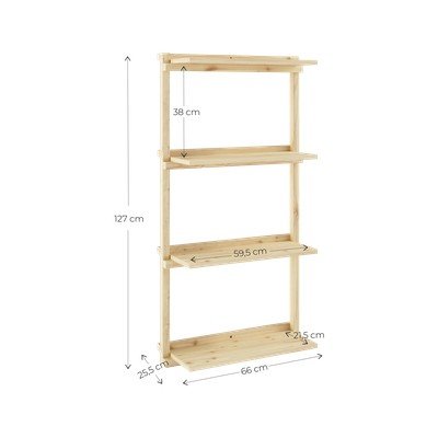 Raamaturiiul on valmistatud kvaliteetsest männipuidust, mis annab sellele elegantse ja ajatu välimuse. Selle mõõtmed 66 x 127 cm võimaldavad seinapinda tõhusalt kasutada.
