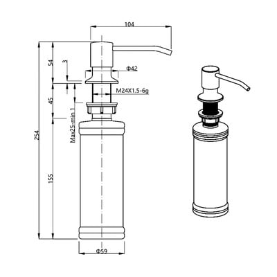 Matt hõbedane plastmass sisseehitatud seebidosaator 350 ml – Sapho