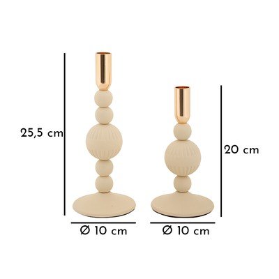 Nende disain mängib siledate ja ribiliste sfääriliste kujundite kombinatsiooniga, luues peene ja modernse ilme. Küünlajalgade pind on matt ja küünla ülemine osa on valmistatud läikivast metallkaelast.