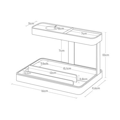 Yamazaki käepärane statiiv võimaldab kõiki seadmeid ühes kohas hoida ja laadida. Ülal on kaabliava ja silikoonist padi oma nutikella jaoks. Alumisel pool on hoidik telefoni ja tahvelarvuti jaoks ning ruumi muude tarvikute jaoks.