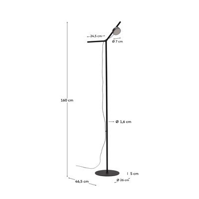 Must hämardatav LED-põrandalamp (kõrgus 160 cm) Orey - Kave Home