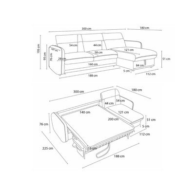 Igapäevaseks magamiseks/ümberpaigutatav/kokkupandav/panipaigagaParem nurk/vasak nurk/muutuv/koos lamamistooligaVeekindelMustNeljakohalineLaius 300 cmSügavus 180 cmIstme sügavus 58 cm