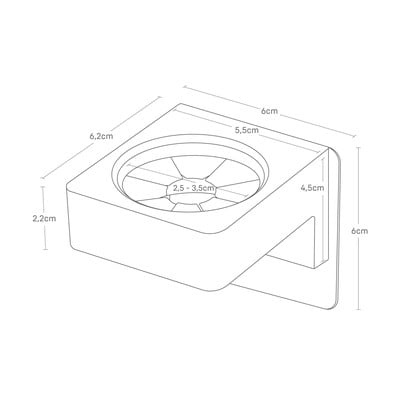 Hea teada: Hoidja paigaldatakse ilma puurimata. Kaasas on isekleepuv foolium, mis hoiab hoidikut kindlalt siledatel, mittepoorsetel pindadel.