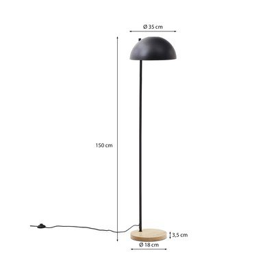 Kave Home Catlar põrandalamp on valmistatud musta viimistlusega metallist. Lambil on poolringikujuline vari ja see seisab lihtsal tuhapuidust alusel. See ühildub E27 pirniga, mille maksimaalne võimsus on 40 W. Pirn ei kuulu komplekti.