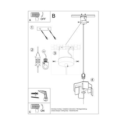 Must rippvalgusti metallist varjuga ø 24 cm Rossario - Sollux