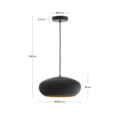 Kave Home Inda rippvalgusti avaldab muljet oma minimalistliku disaini ja terrakotaefektiga musta metallvarjuga. Lambivarju sisemus on värvitud messingist varjundiga, mis loob huvitava kontrasti. 30 cm läbimõõduga lamp sobib E27 pirniga, mille maksimaalne võimsus on 25 W. Pirn ei kuulu komplekti.