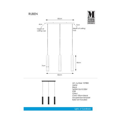 Must rippvalgusti Pendant 3L Ruben - Markslöjd