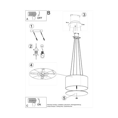 Must rippvalgusti tekstiilist varjuga ø 50 cm Volta - Sollux