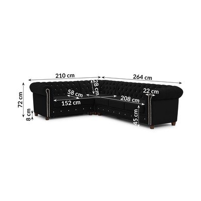 Must sametist nurgadiivanvoodi (vasak nurk/L-kujuline) York Blik - Ropez