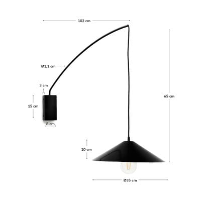 Kave Home Kally seinalamp on ideaalne aksessuaar neile, kes otsivad originaalset ja stiilset valgustust. Lamp on valmistatud metallist ja avaldab muljet oma ebatavalise kujuga, mille kooniline lambivari ripub tekstiilkaabli küljes. Kasutamiseks peate ostma E27 sokliga pirni, mille maksimaalne võimsus on 40 W.