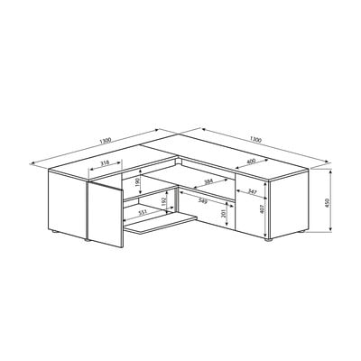 Valge tammedekooriga telerilaud 130x46 cm Angle - TemaHome