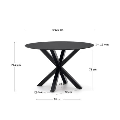 Must ümmargune söögilaud klaasist lauaplaadiga ø 120 cm Argo - Kave Home