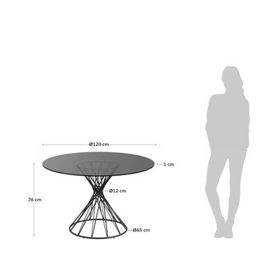 Must ümmargune söögilaud klaasist lauaplaadiga ø 120 cm Niut - Kave Home