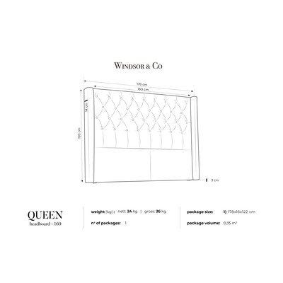 Ocelově šedé čelo postele Windsor & Co Sofas Queen, 176 x 120 cm
