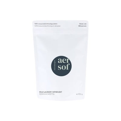 Aer pesupulber tugineb jätkusuutlikkusele, keskkonnasõbralikkusele ja põhjalikkusele. Sa ei saavuta mitte ainult puhast ja värsket pesu, vaid ka kõrvaldad plasti - see on kompostitav ja lagunev paberpakend.
