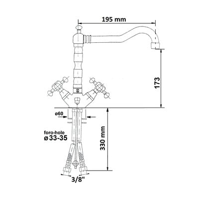 See messingist kraanikraan koos kraanikontrolliga avaldab muljet oma retrodisainiga. Sellel on pöörlev varras ja 3/8" ühendus. Lisaks kraanile leiate ka painduvad toitevoolikud, lukustatava väljalaskeava ning kuuma ja külma vee märgistuse tšehhi ja inglise keeles.