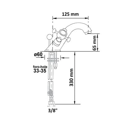 See messingist kraanikraan koos kraanikontrolliga avaldab muljet oma retrodisainiga. Sellel on 3/8" ühendus. Lisaks kraanile leiate ka paindlikud toitevoolikud, lukustatava väljalaskeava ning kuuma ja külma vee märgistuse tšehhi ja inglise keeles.