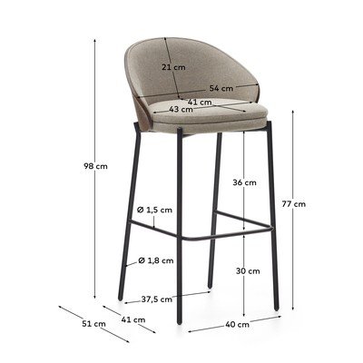 Kave Home elegantne Eamy baaritool toob igasse interjööri stiili ja mugavust. 77 cm istmekõrgusega tool sobib ideaalselt moodsatesse köökidesse või baaridesse. See on varustatud plastikust patjadega, mis kaitsevad põrandat kriimustuste eest. Ergonoomiline disain ja kvaliteetsed materjalid tagavad mugava istumise ja pika kasutusea. Ideaalne valik neile, kes otsivad funktsionaalsuse ja esteetika kombinatsiooni.