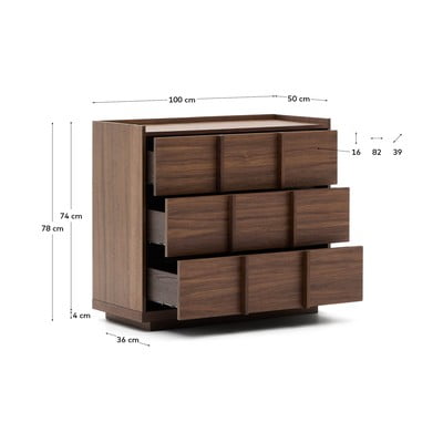 Pruun pähklipuidu spoonist kummut 100x78x50 cm Onix - Kave Home