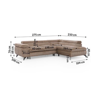 Pruun velvetist nurgadiivan (parempoolne/L-kujuline) Marbeya - Ropez