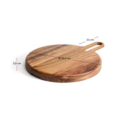 Puit pärineb vastutustundlikult majandatud metsadest, mida kinnitab FSC™ 100% sertifikaat. See praktilise käepideme ja ümara kujuga lõikelaud pole mitte ainult funktsionaalne abiline köögis ja söögitoas, vaid ka kaunis dekoratiivne element.