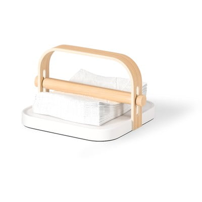 Hoidja on valmistatud kvaliteetsest puidust ja sellel on libisemiskindel alus, millel on kummist jalad lisastabiilsuse tagamiseks. Metallist raskus aluses tagab, et hoidja püsiks kindlalt paigal. Samuti on kaasas puidust varras, mis hoiab salvrätikuid paigal.