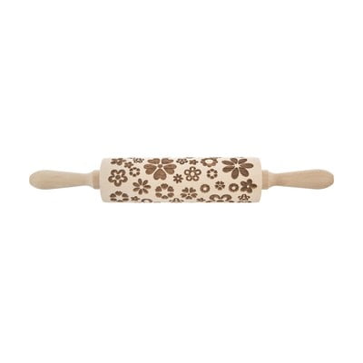 Puidust taignarull Orion reljeefse lillemustriga. Rull on valmistatud puidust ja selle rullimispinna pikkus on 20 cm. See sobib küpsiste, kommide ja muu jaoks.