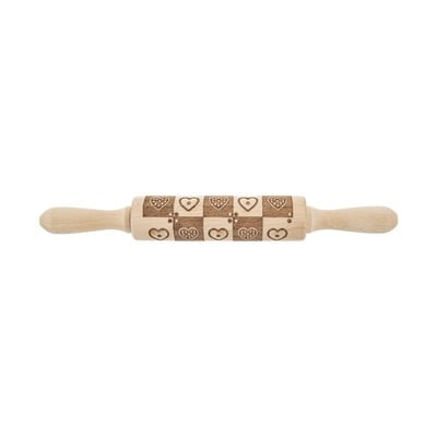 Südamekujulise reljeefse mustriga puidust taignarull Orionilt. Rull on valmistatud puidust ja selle rullpinna pikkus on 16 cm. See sobib küpsiste, maiustuste ja muu jaoks.