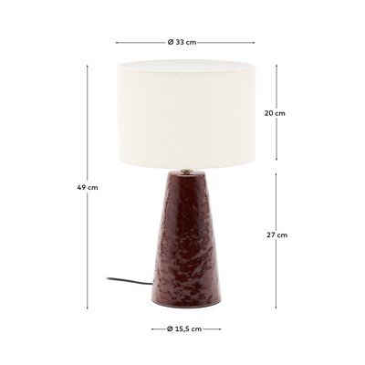 Kave Home Drava laualamp avaldab muljet oma koonilise glasuuritud keraamilise jalaga, millel on tekstuurne efekt. Silindriline puuvillane vari filtreerib õrnalt valgust, aidates luua igas toas hubase ja tasakaalustatud atmosfääri.